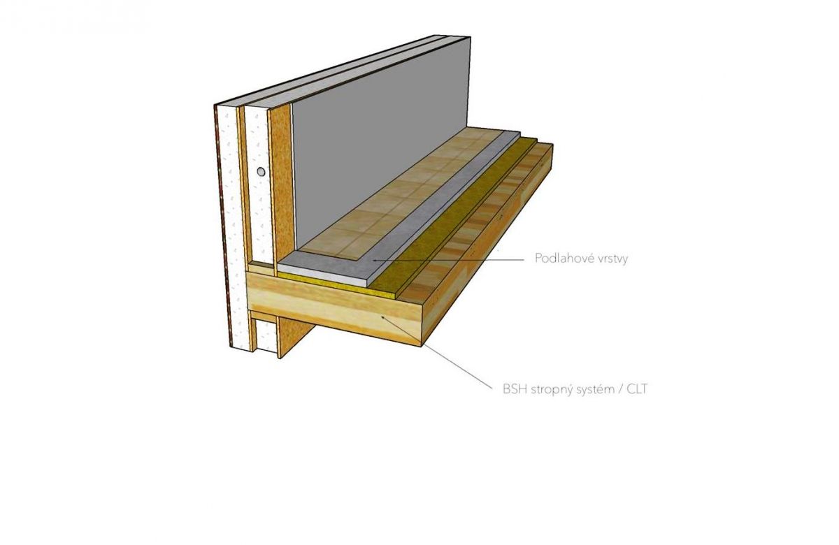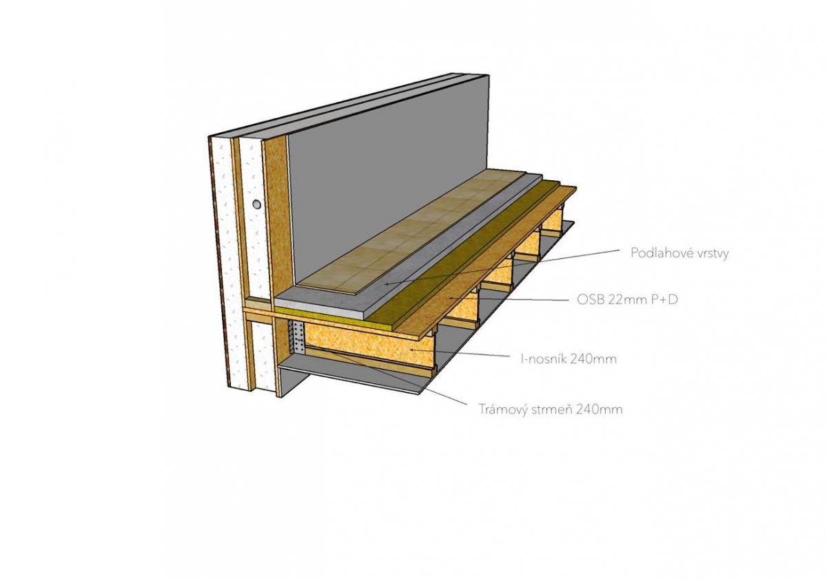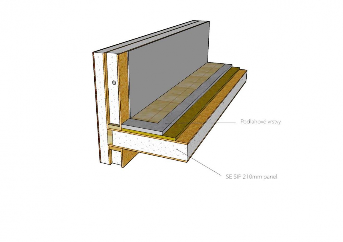 Medzi obvodové steny a vnútorné priečky zhotovíme stropnú konštrukciu pre výstavbu poschodia. Pre vytvorenie stropnej konštrukcie máme niekoľko riešení. Strop sa môže skladať z KVH, BSH hranolov, drevených lepených I-nosníkov, SIP panelov alebo z CLT. Vhodnosť použitých materiálov záleží na statickom posúdení projektanta. Na takto zhotovenú podlahu začneme stavať obvodové steny a vnútorné priečky druhého nadzemného podlažia. SIP’s je ideálnym riešením pre zhotovenie schodiska. Z panelov sa podľa projektovej dokumentácie vytvorí celý systém schodiska, ktorý sa veľmi jednoduchým spôsobom zhotoví.