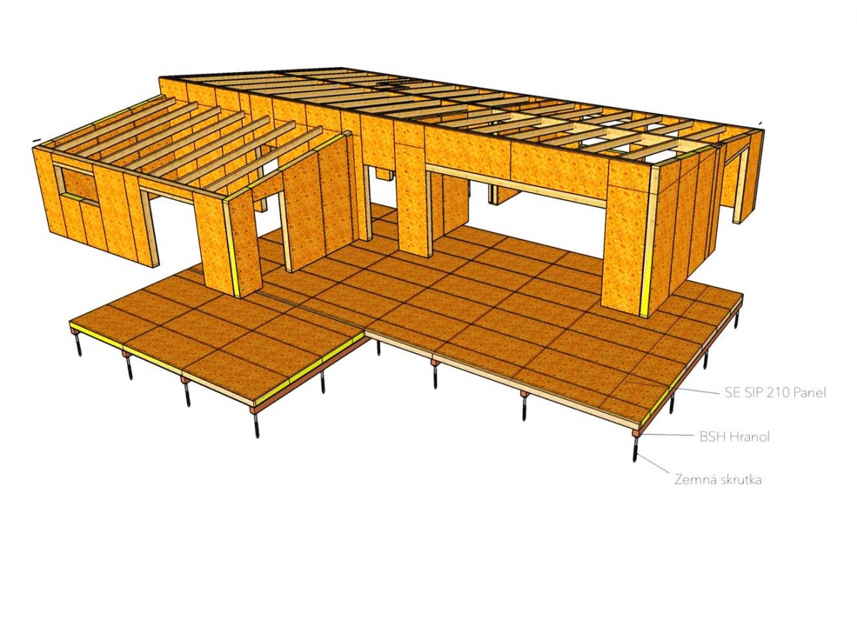 Alternatívne a jedinečné riešenie je založenie na zemných skrutkách. Zhotovenie základovej dosky na zemných skrutkách pod rodinný dom trvá 2-3 dni a nedochádza k devastácii pôdy. Na zavŕtané skrutky sa zhotovuje podporná konštrukcia z drevených hranolov na ktoré sa ukladajú panely SE SIP 210mm.