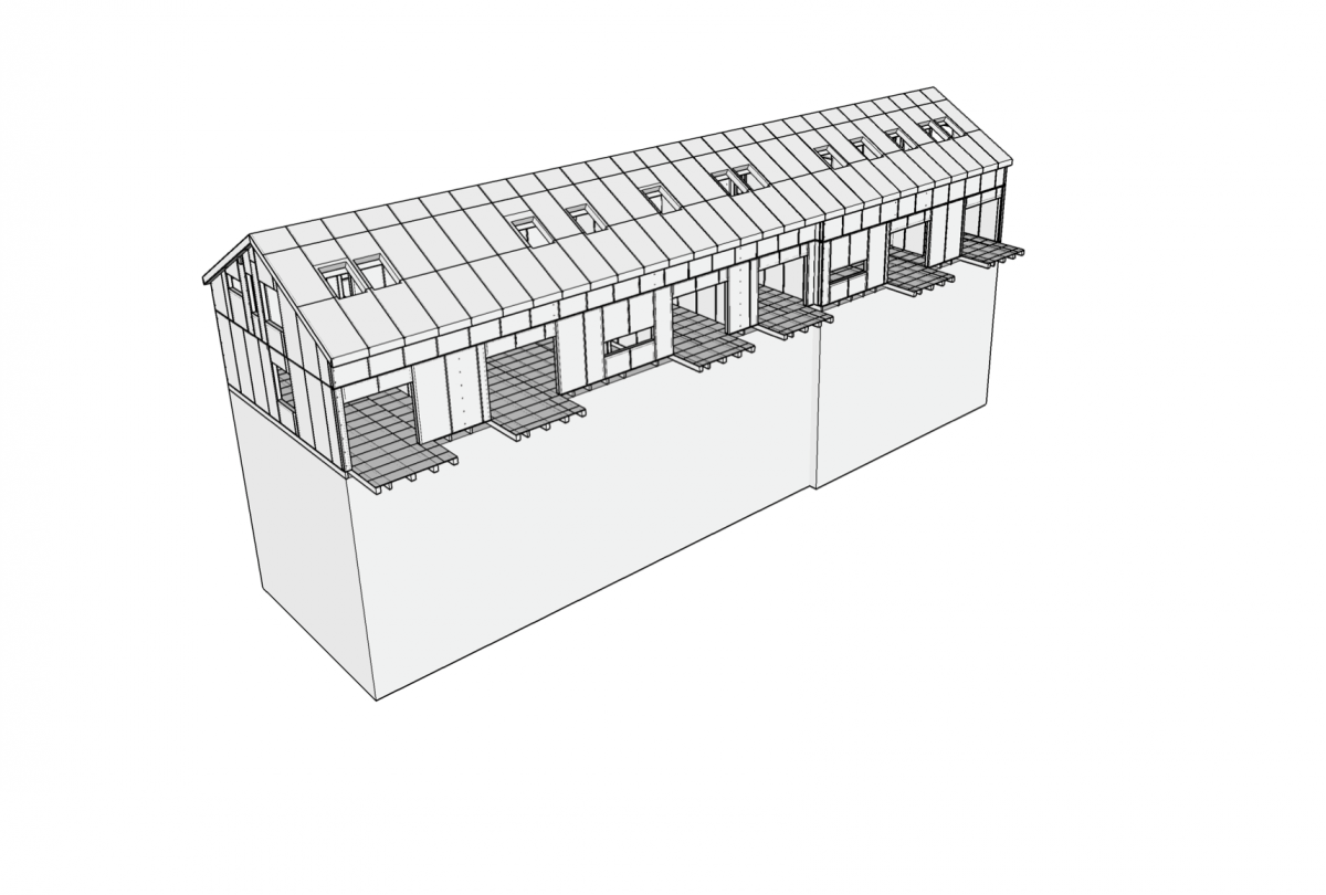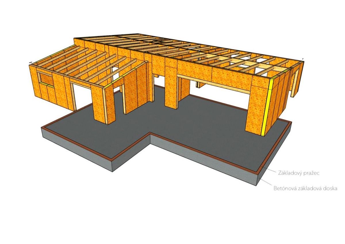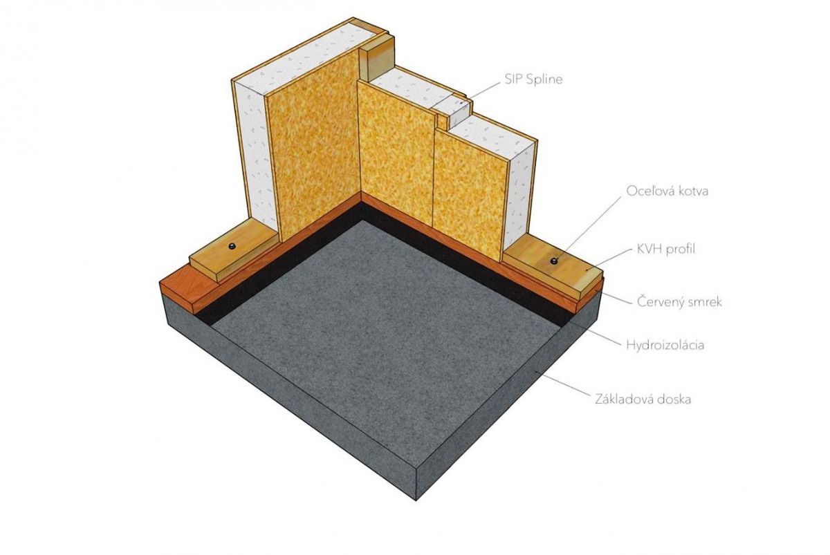 Na zhotovenú základovú dosku sa nanáša vrstva hydroizolácie. Po jej nanesení sa ukladajú pod všetky obvodové steny a vnútorné priečky základové pražce, ktoré tvoria špeciálne ošetrené rezivá. Na základový pražec sa ukladá vložený prvok KVH ktorý bude slúžiť na montáž panelov.