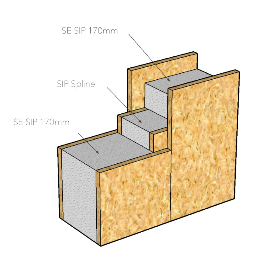 Dôležitou súčasťou stavebného systému je izolovaný prepojovací prvok SIP Spline s ktorým sa panely prepájajú navzájom. Tým nedochádza k prerušovaniu izolačného jadra a k prebytočným tepelným mostom.