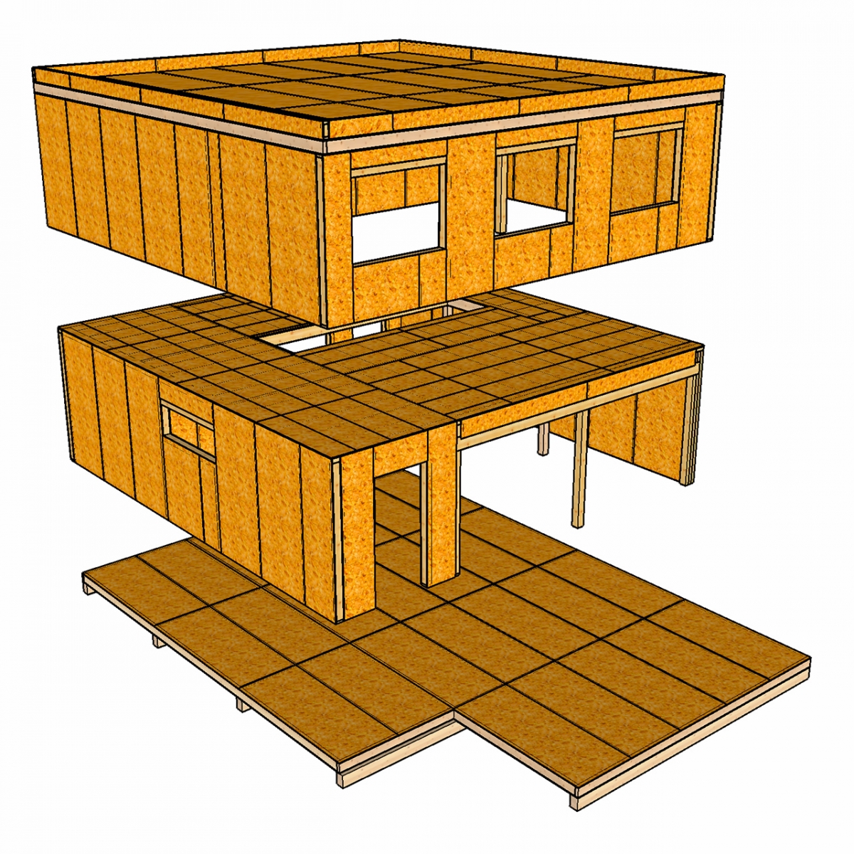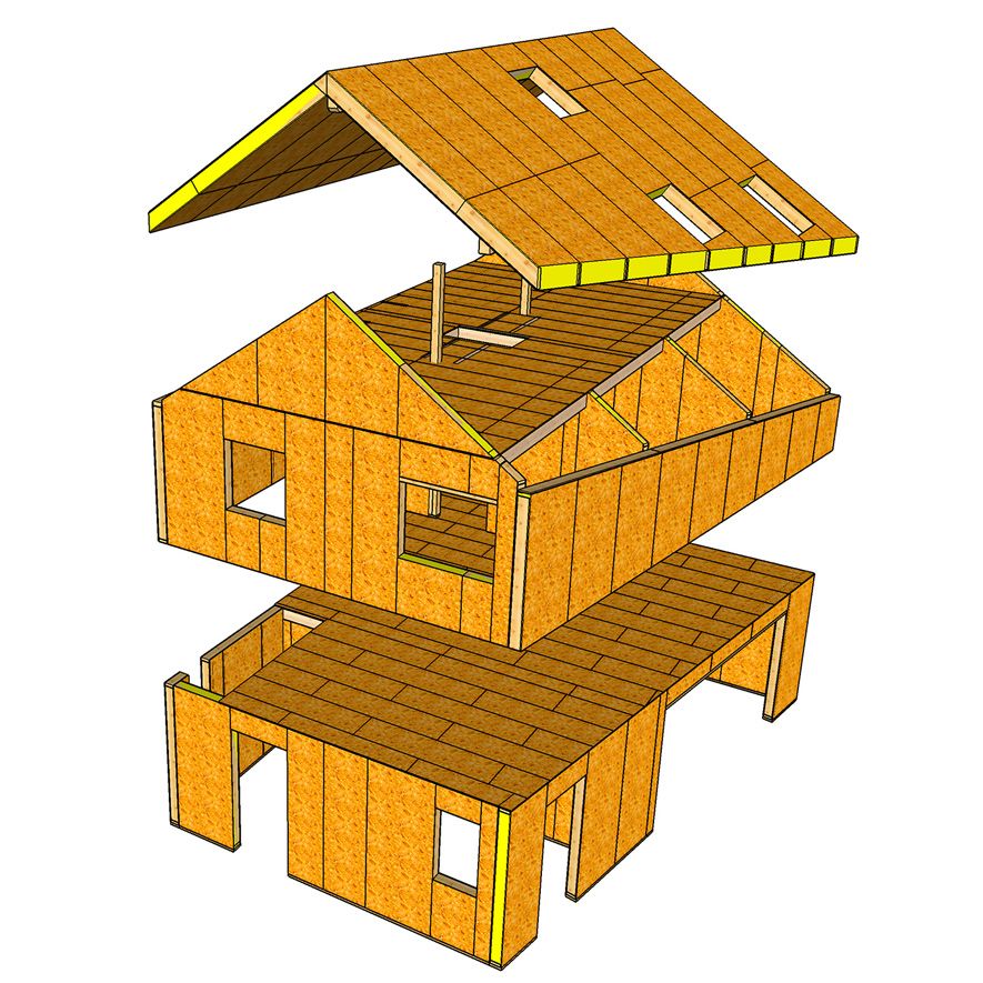 Základom stavebného systému je sendvičový panel. Panel sa skladá z dvoch OSB4 tabúľ a izolačného jadra, ktoré tvorí expandovaný samozhášavý polystyrén EPS alebo PUR.